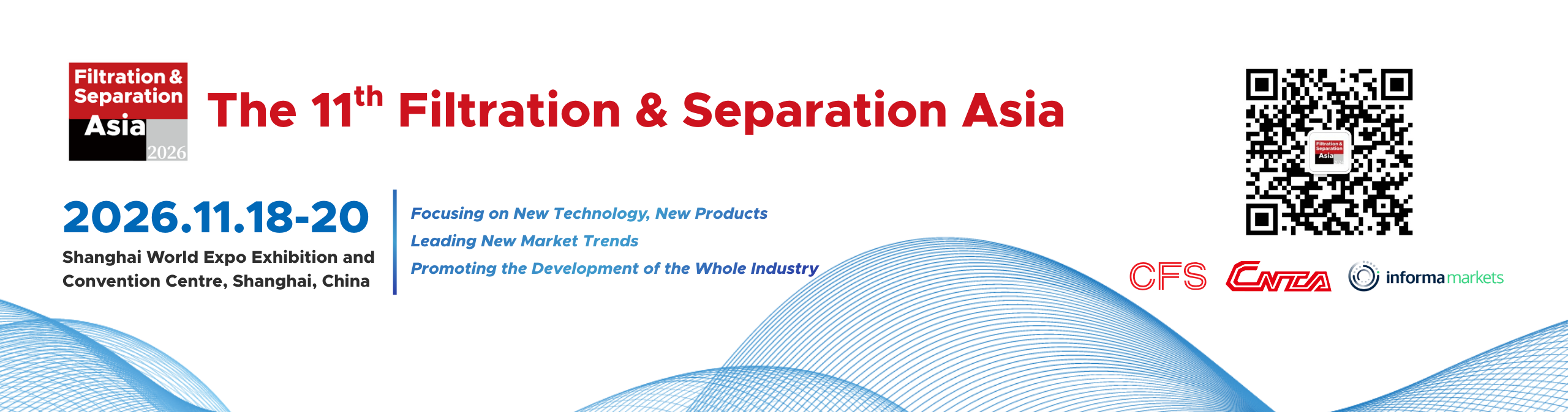 The 11th Filtration & Separation Asia (FSA2026) will be held on November 18-20, 2026 at Shanghai World Expo Exhibition and Convention Centre, Shanghai, China.